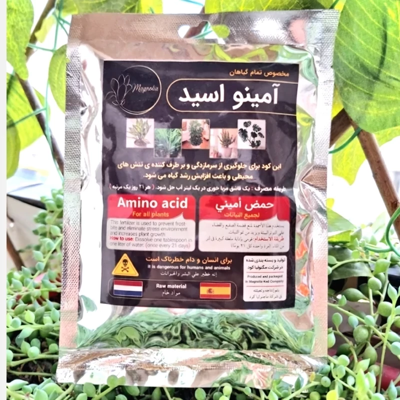 🔻🔻🔻 کارایی این کود چیه؟؟؟ 🟢 اسیدهای آمینه با همراهی و همراه در فراهم آوری زیستی، نقش به سزایی را جهت رشد موثر و با دوام گیاه ایجاد کرده و با عبور از سد برگ ها و جذب توسط سلول های برگ، مورد استفاده واقع می شوند یا به سایر قسمت های گیاه مانند گل ها و میوه ها منتقل شده و در آنجا مورد استفاده قرار می گیرند. ⭕️⭕️⭕️ ضد شوک و تنش گیاه ، بعد از تغیر فصول یا تعویض گلدان و بالا بردن مقاوت گیاه در برابر بیماری و آسیب